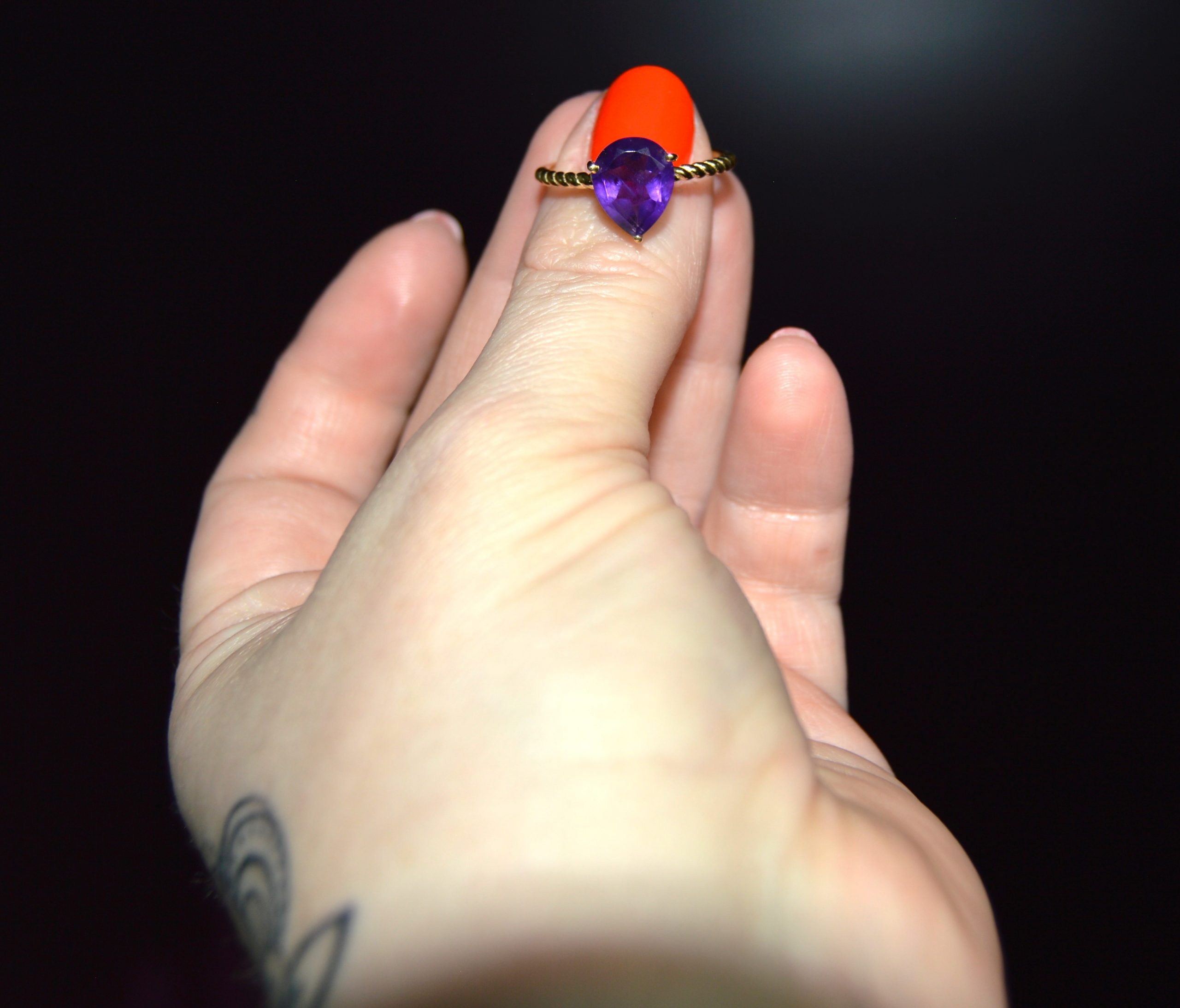 Be the first to review “14k Gold plated Sterling Silver ( size 8) Teardrop Amethyst ring”