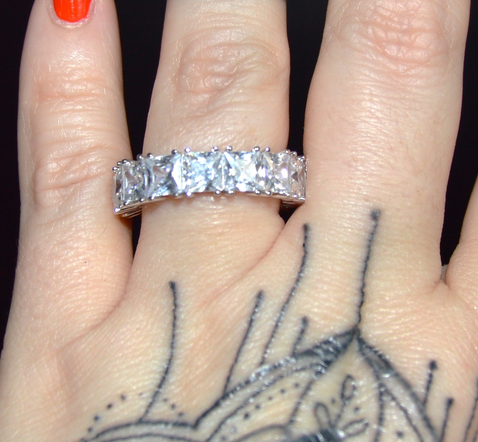 Be the first to review “Large Sterling Silver Band (size 8 1/2) with a continuous line of Cubic Zirconia Stones”
