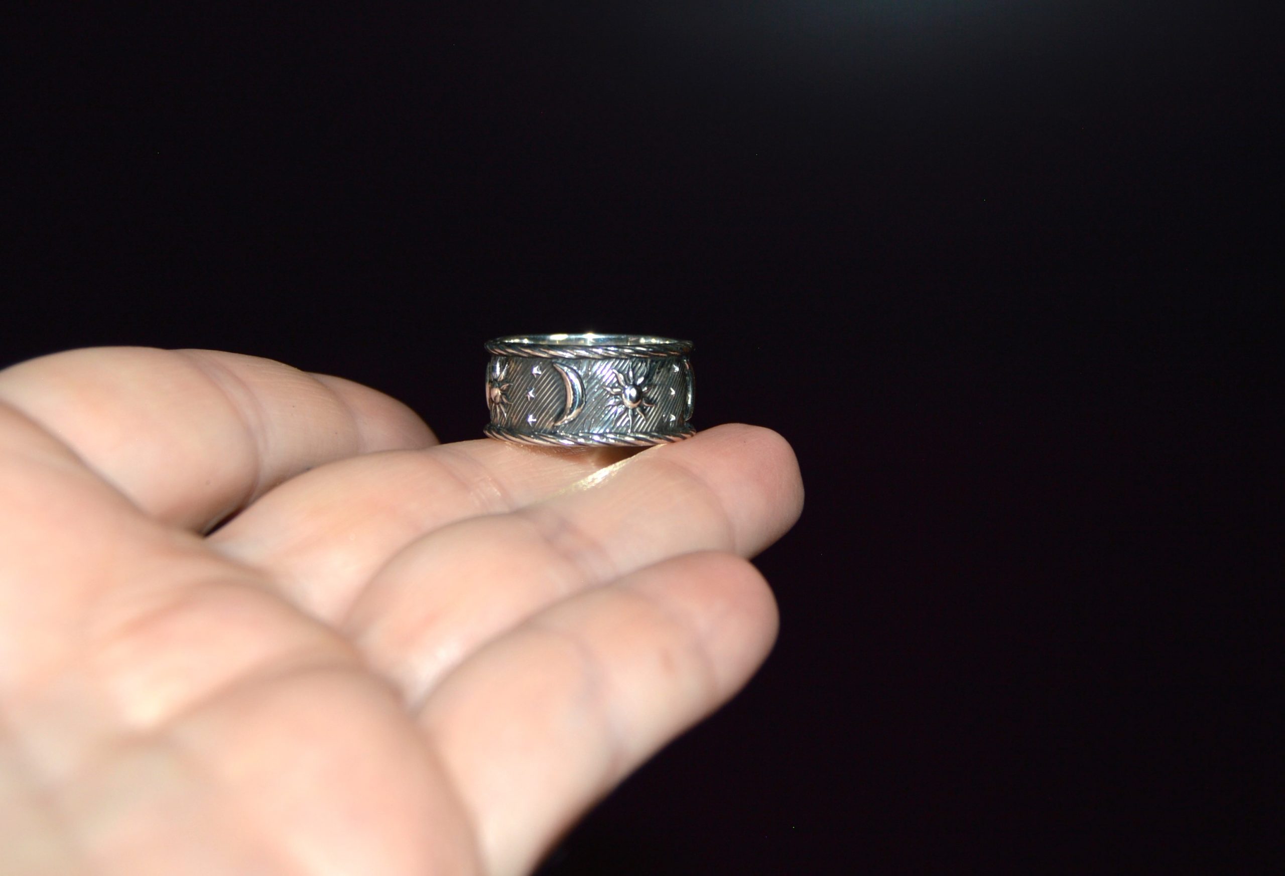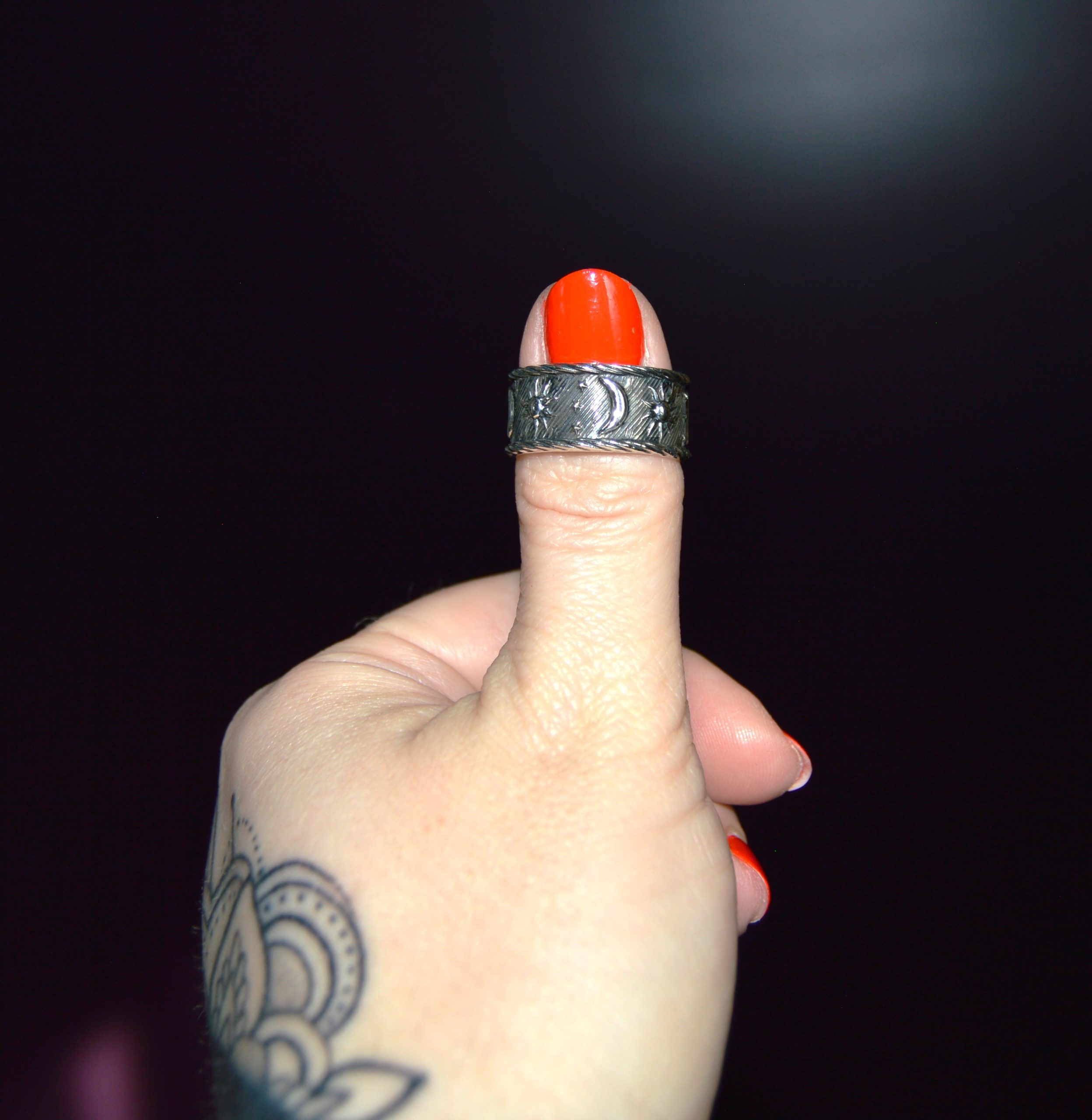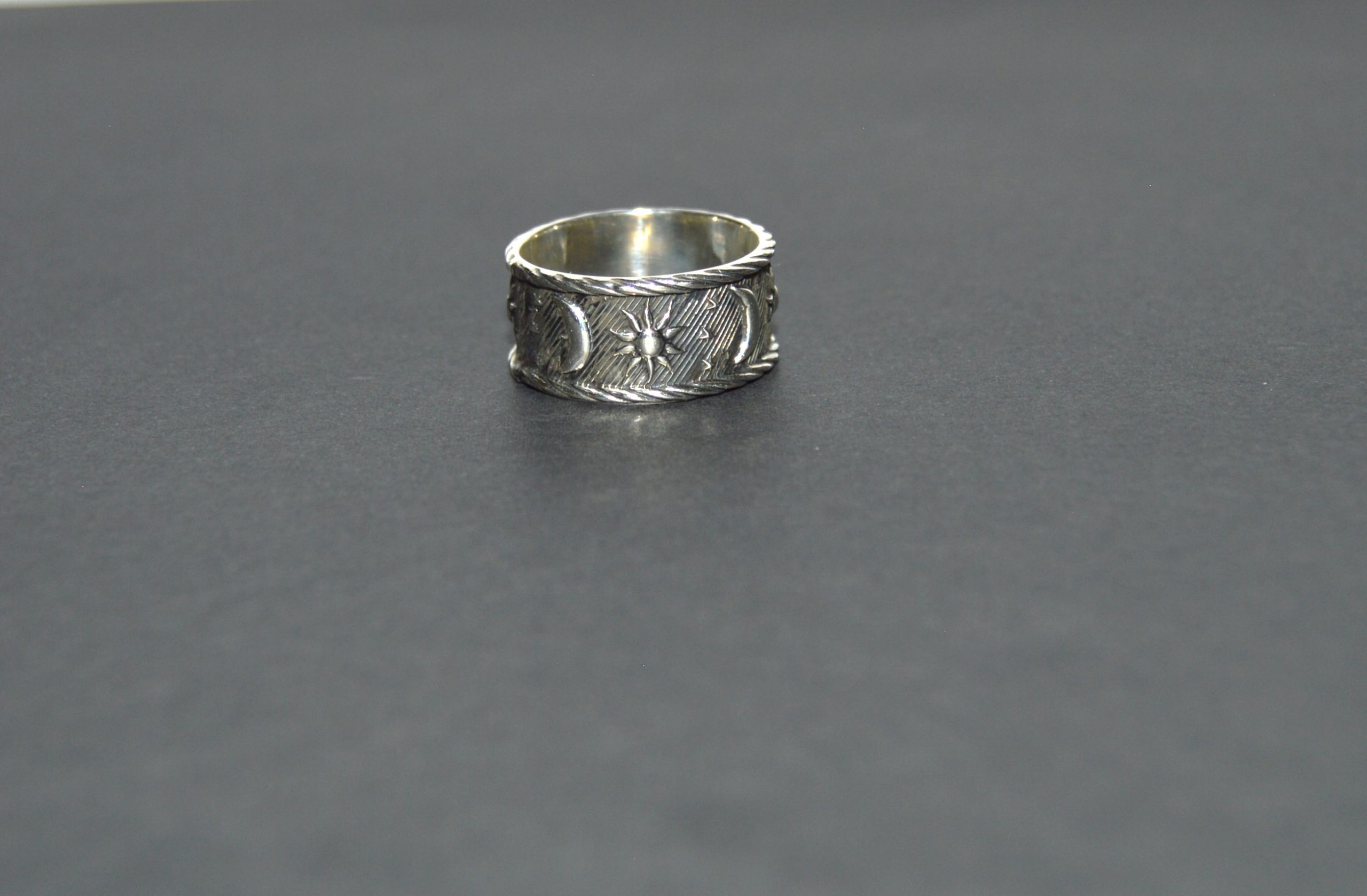 This size 7.5 ring showcases a dreamy design of a crescent moon and twinkling stars, crafted from authentic Mexican silver. Its celestial theme and polished finish make it a truly enchanting piece for stargazers and romantics alike.